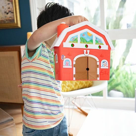 - All parts and pieces fit easily into the playset, secured by a folding floor, for easy storage and portability