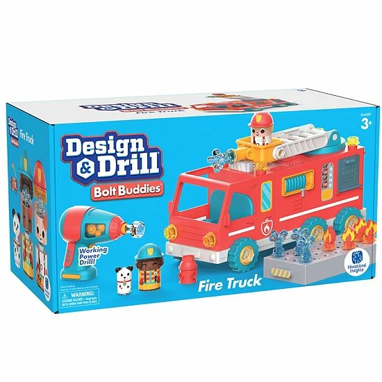 - DRILLING CONSTRUCTION PLAY SET: Kids use a real, working, kid-safe toy drill to build their very own fire truck, complete with hinged ladder and fire and water toppers, then pop the Bolt Buddy firefighter, fire chief, and Dalmatian dog pal onto the truck and race into pretend play fun! Great way to introduce early STEM skills