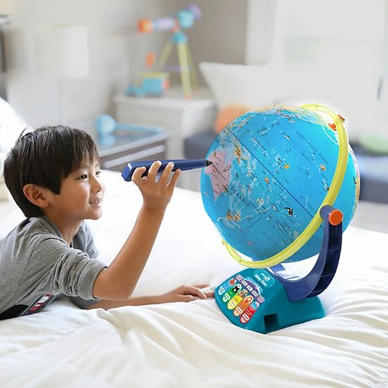- Little learners simply press the smart pen to any spot on the globe to hear fun facts, play quiz games, and more