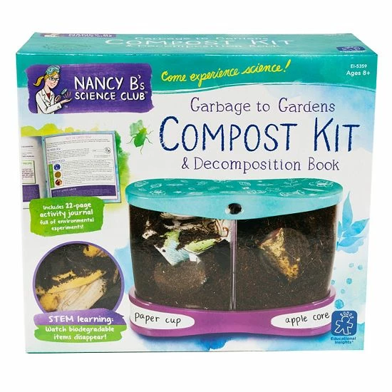 Teach your child about life cycles and decomposition with this Educational Insights Nancy B’s Science Club Compost Kit and Decomposition Book.